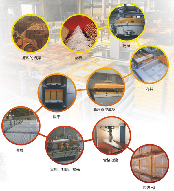 该产品专用于人造石板材的生产制造,产品采用PLC程序自动控制,各种板材在制造过程中的浇注、定型、脱模、锯断经生产线自动完成,该生产线以技术优势确保高效制造出优质的人造石板材,是现代建材生产行业各厂家首选设备。